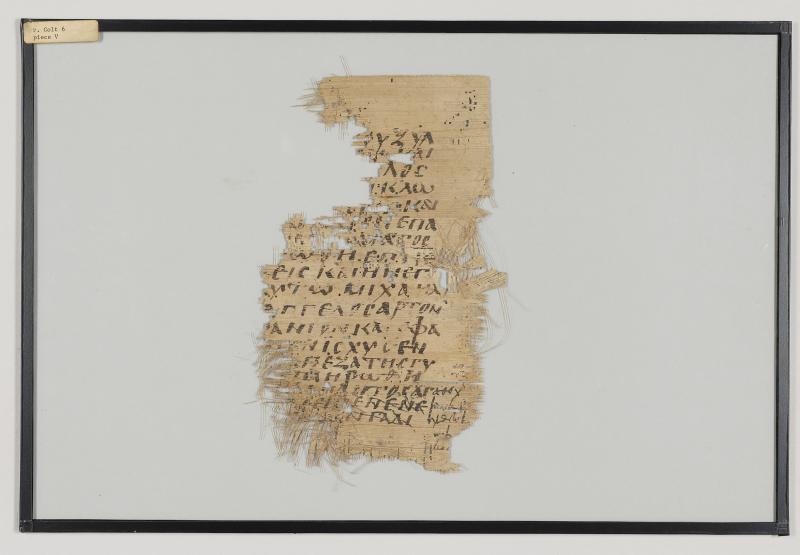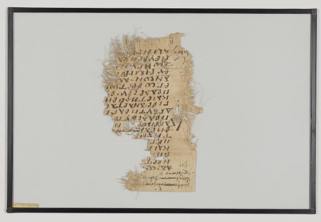 1 pane of glass containing 1 papyrus fragment ; 9 x 5 1/2 inches