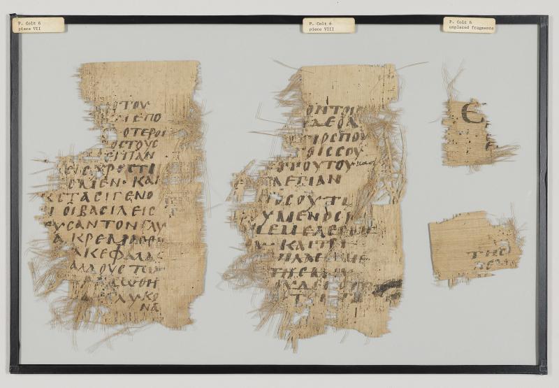 During excavations at Auja el-Hafir (ancient city of Nessana) in Palestine, Harris Dunscombe Colt (Colt Archaeological Expedition), under the auspices of the British School of Archaeology in Jerusalem, discovers papyri (considered the joint property of Colt and the Palestine Government, with a division of them to be made later) in two storerooms attached to the churches of Mary Mother of God and of Sts. Sergius and Bacchus, winter of 1935-36; 13 papyrus rolls and 20 boxes of papyri fragments (and 460 coins) are lent with the government's permission to the British Museum for treatment and study purposes, agreement dated 28 May 1936; Colt requests the loan to New York University of certain papyri, 20 August 1937; 12 papyri (and 15 shards, 1 bone and 3 stone objects) are lent with the government's permission to the British Museum for treatment and study purposes, agreement dated 21 August 1937; loan agreement of 28 May 1936 extended to 31 December 1938; four Arabic papyri are returned to Palestine, as of 28 February 1939; loan agreements of 28 May 1936 and 21 August 1937 are extended to 31 December 1939; the papyri are deposited at the Classics Department of New York University for cataloguing, date unknown but by 1941 at the latest; loan of some papyri to Brooklyn Museum of Art for exhibition, 1945; Colt donates literary papyri nos. 7 and 13 to the Pierpont Morgan Library and places the rest of the literary papyri (a portion of which are his) on deposit, 1955; Colt places on deposit at the Morgan the non-literary papyri (a portion of which are his), 1958; following Colt's death in 1973, his estate indicates that Colt's portion of the papyri are gifts to the Morgan, 1979; papyri fragments that were still at New York University are transferred to the Morgan, 1981.