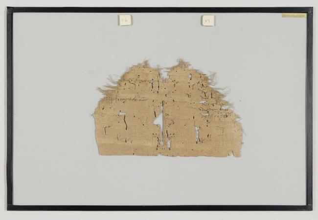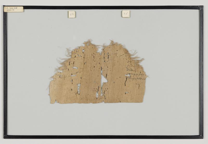 1 pane of glass containing 1 papyrus fragment ; 6 x 9 inches
