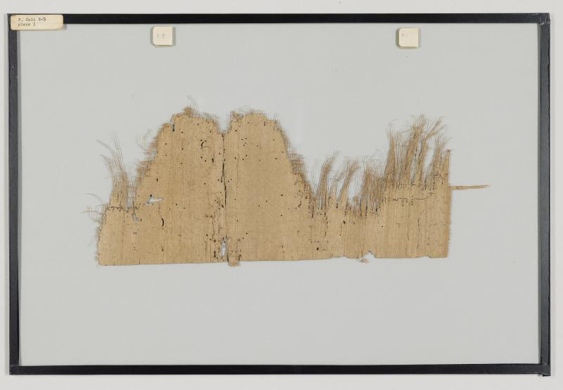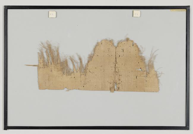 1 pane of glass containing 1 papyrus fragment ; 5 x 12 inches