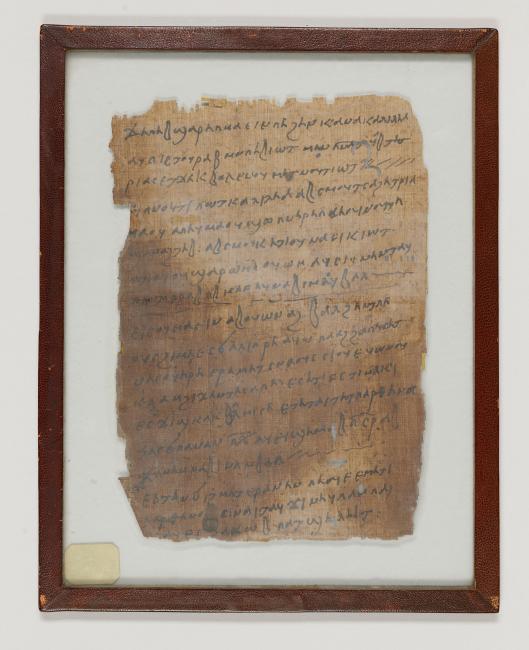 1 pane of glass containing 1 papyrus fragment ; 9 x 6 1/2 inches