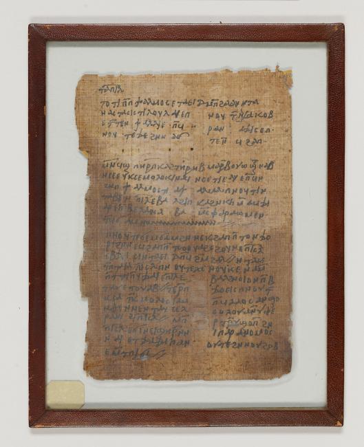 1 pane of glass containing 1 papyrus fragment ; 9 x 6 1/2 inches