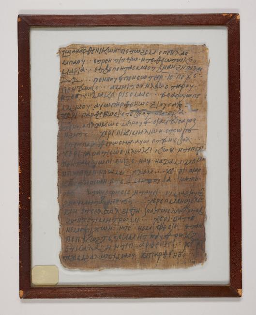 1 pane of glass containing 1 papyrus fragment ; 9 x 6 1/2 inches