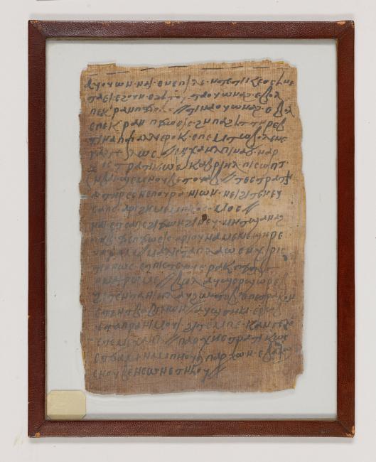 1 pane of glass containing 1 papyrus fragment ; 9 x 6 1/2 inches