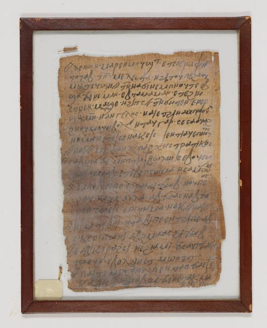 1 pane of glass containing 1 papyrus fragment ; 9 x 6 1/2 inches