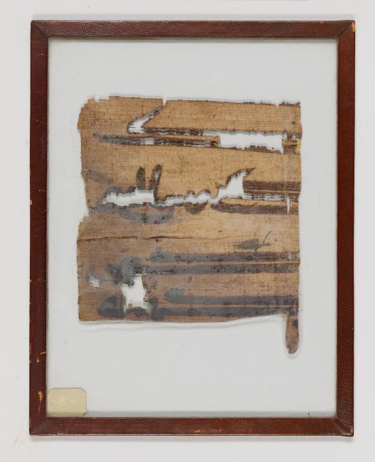 1 pane of glass containing 1 papyrus fragment ; 7 x 6 1/2 inches