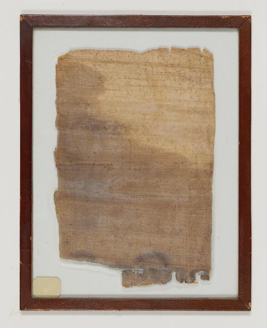 1 pane of glass containing 1 papyrus fragment ; 9 x 6 1/2 inches