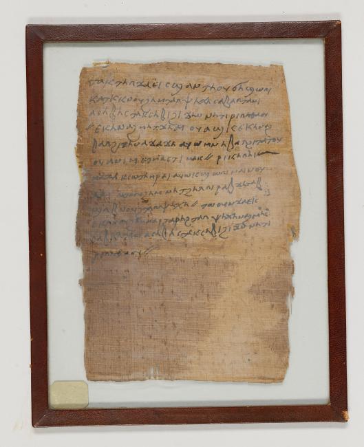 1 pane of glass containing 1 papyrus fragment ; 9 1/2 x 6 1/2 inches
