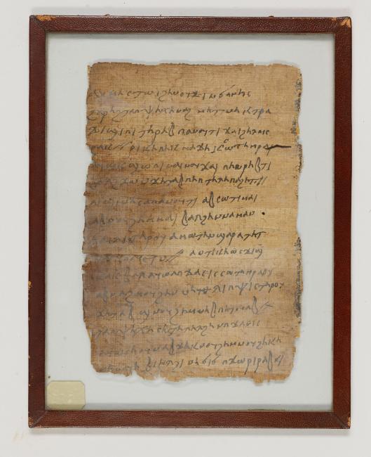 1 pane of glass containing 1 papyrus fragment ; 9 1/2 x 6 1/2 inches