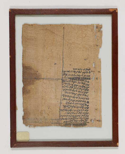 1 pane of glass containing 1 papyrus fragment ; 9 x 6 inches
