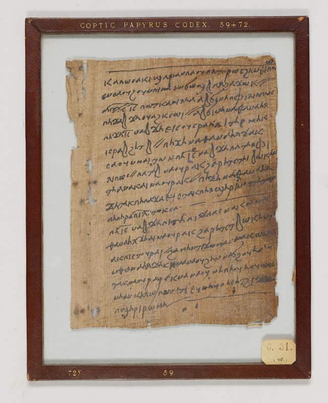 Part of a lot purchased in 1916 by Francis Willey Kelsey (1858-1927) on behalf of Pierpont Morgan, through the agency of Dr. David L. Askren, an American missionary and physician residing in the Fayyūm; brought to Henri Hyvernate in Rome by Kelsey in the beginning of 1920.