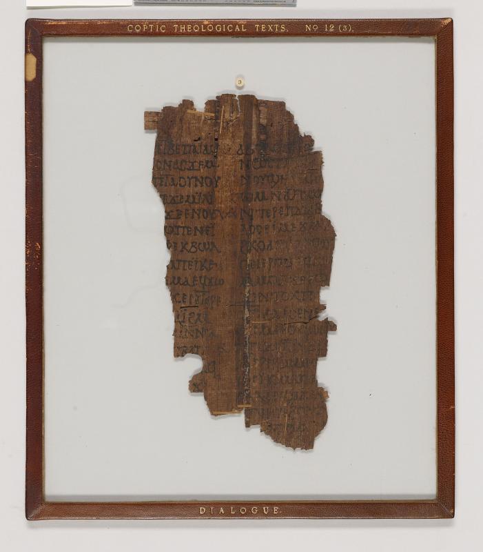 Amh. Copt. Pap. 12: Manuscript fragments from three leaves of a papyrus codex which contain a dialogue (Erōtapokrisis?); written in Egypt.