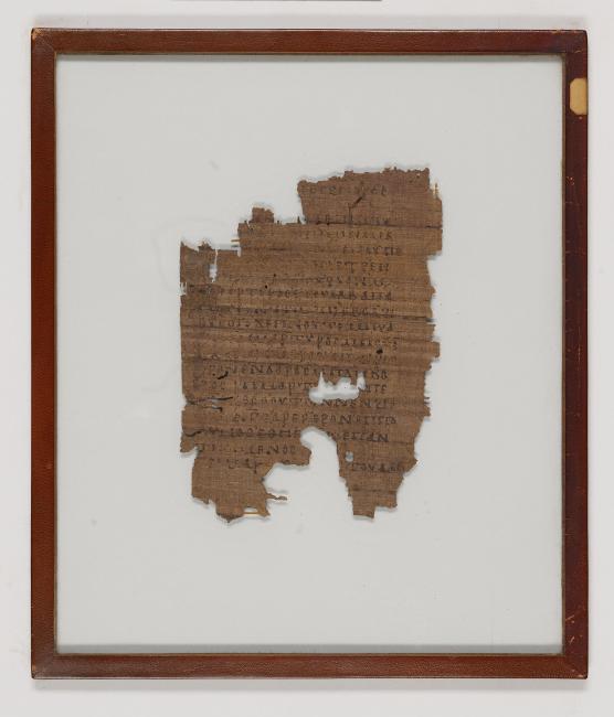 1 pane of glass containing 1 papyrus fragment ; 198 x 146 mm