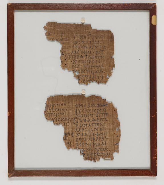 1 pane of glass containing 2 papyrus fragments ; 130 x 150 mm, 140 x 160 mm