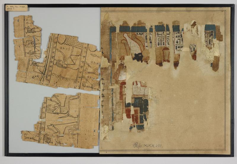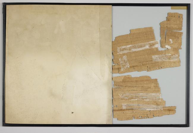 1 pane of glass containing 2 papyrus fragments ; 12 x 10 in.; 10 1/2 x 7 in.