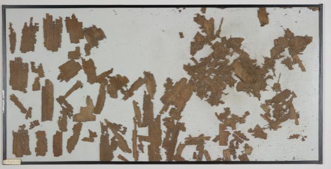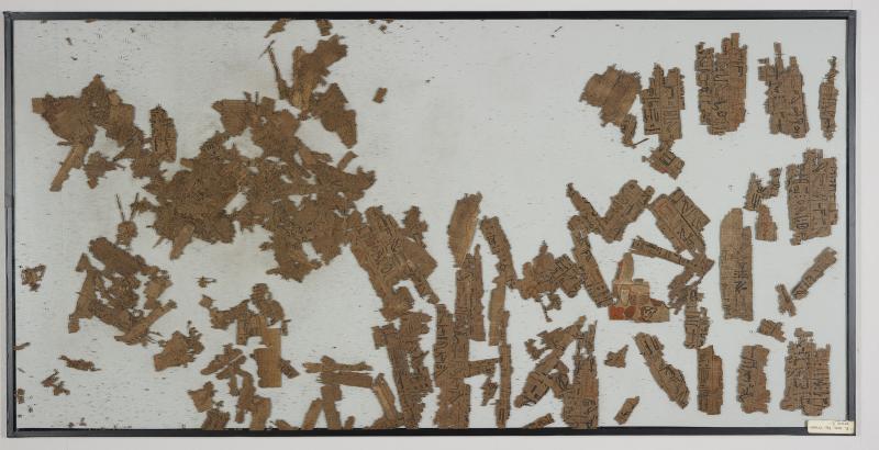 1 pane of glass containing many papyrus fragments