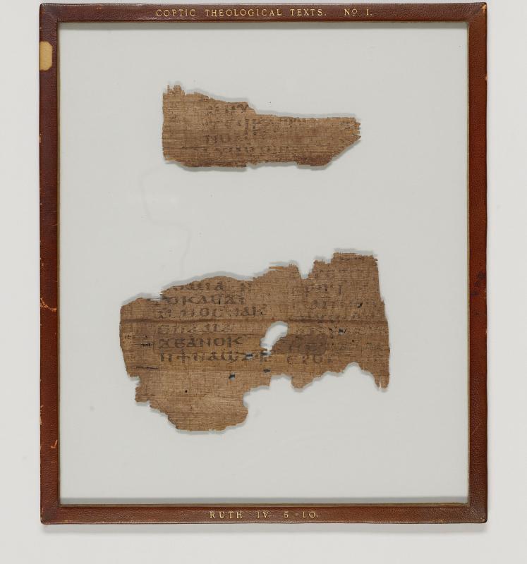 Manuscript fragments (.1 and .2) from a leaf of a papyrus codex of the Book of Ruth (Ruth 4:5-10); written in Egypt.