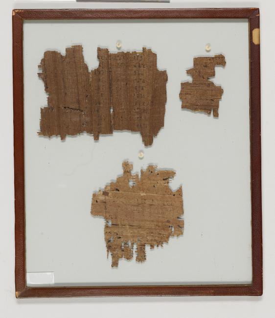 1 pane of glass containing 3 papyrus fragments ; 79 x 59 mm, 126 x 164 mm, 133 x 117 mm