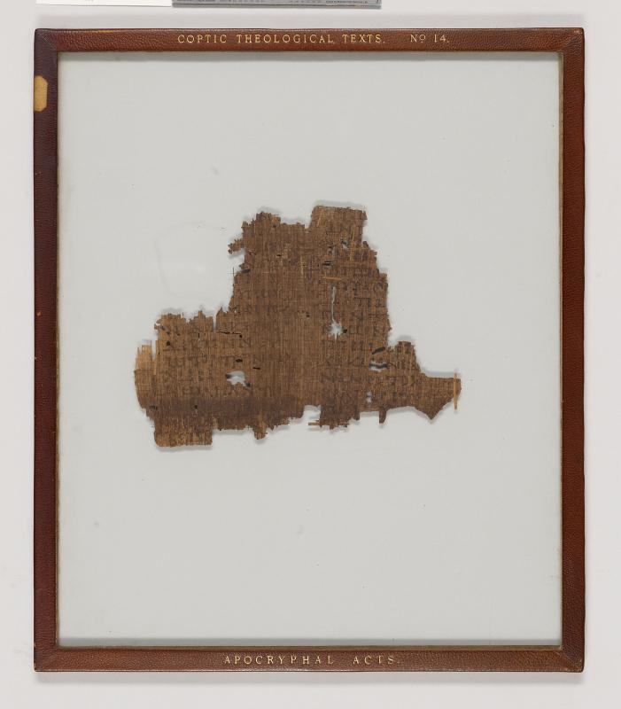 Manuscript leaf fragment from a papyrus codex of perhaps an Apocryphal Acts of the Apostles; written in Egypt.
