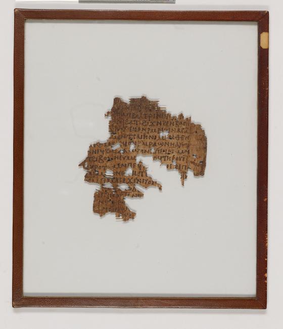 1 pane of glass containing 1 papyrus fragment ; 151 x 155 mm