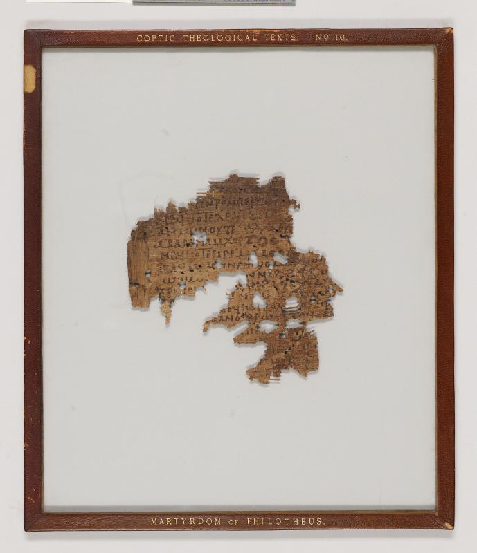 Manuscript leaf fragment from the martyrdom of St. Philotheus of Antioch; written in Egypt.