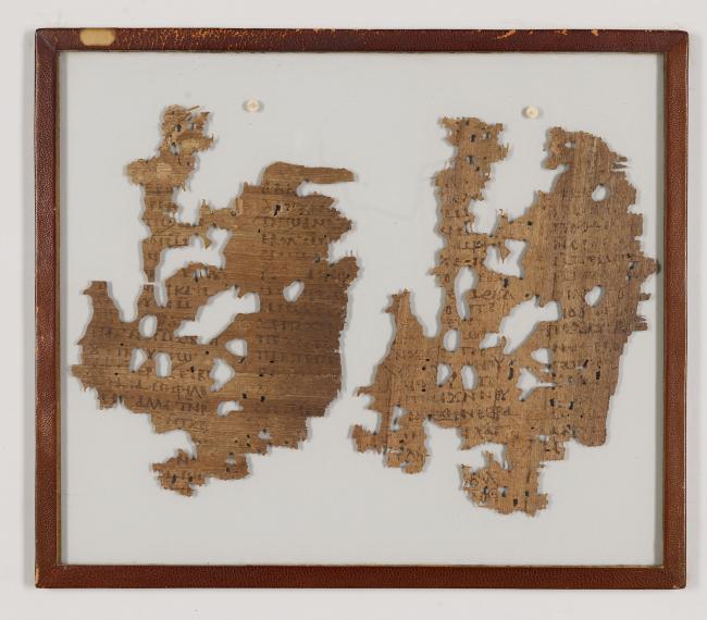 1 pane of glass containing 2 papyrus fragments ; 220 x 167 mm, 216 x 160 mm