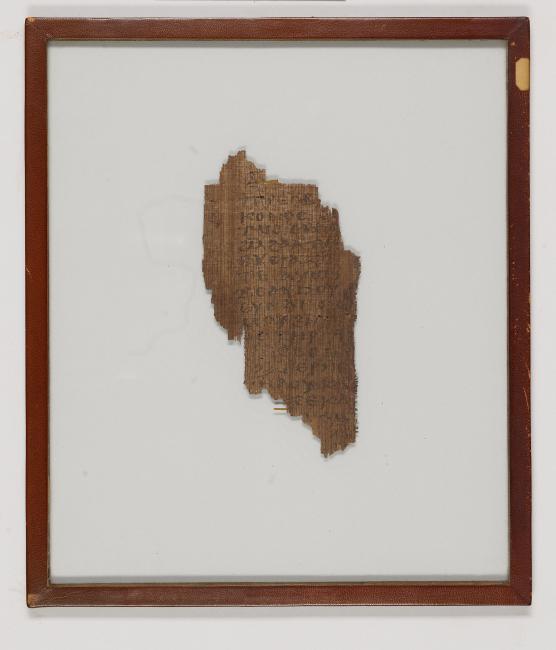 1 pane of glass containing 1 papyrus fragment ; 188 x 97 mm