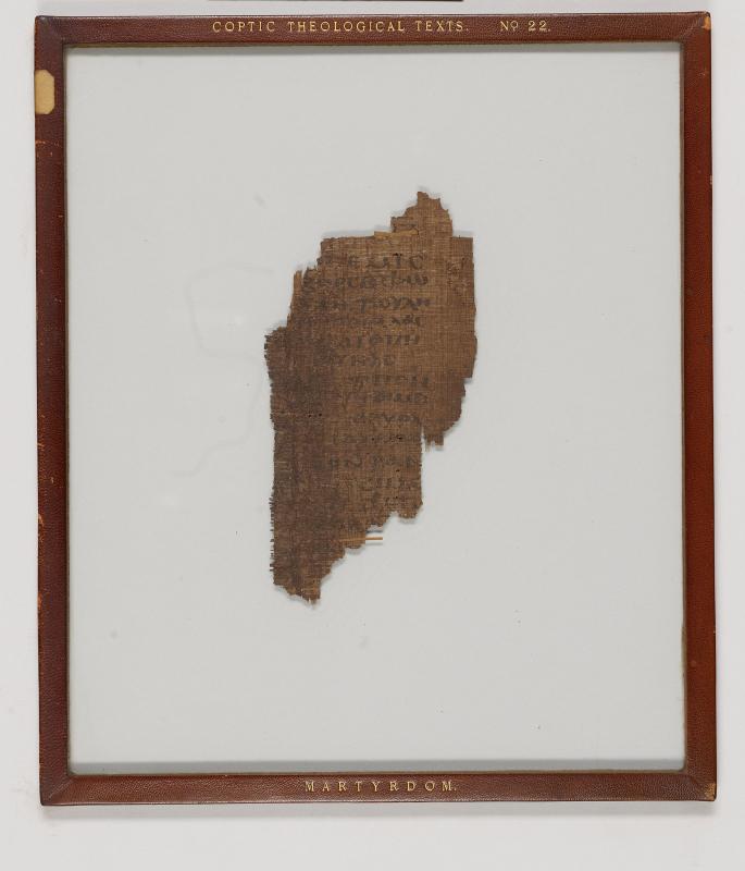 Manuscript leaf fragment from a papyrus codex martyrdom; written in Egypt.