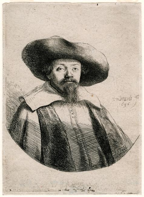 Some further shading added to the hat, e.g. vertical lines to area above the sitter's right temple, just above the hair. Outline of brim is now clearly defined from the hair and forehead. Some accidental marks appear at the bottom of the plate. (White and Boon)
