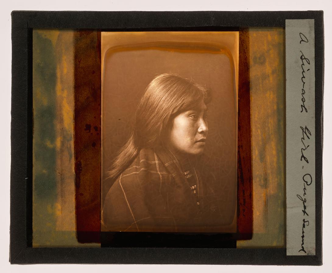 Head-and-shoulders portrait of an unidentified young woman, in three-quarters profile (Suquamish).