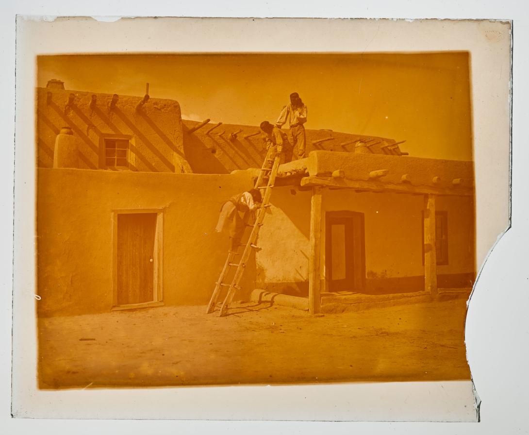 A group descending a ladder (San Ildefonso Pueblo).