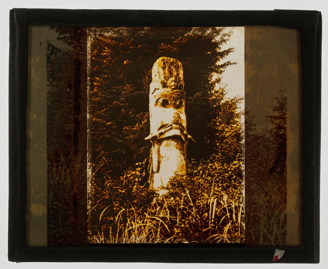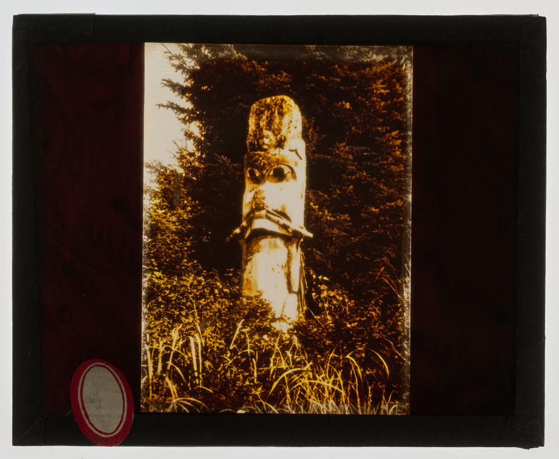 A totem pole in a Tlingit Sanya (Cape Fox) village.