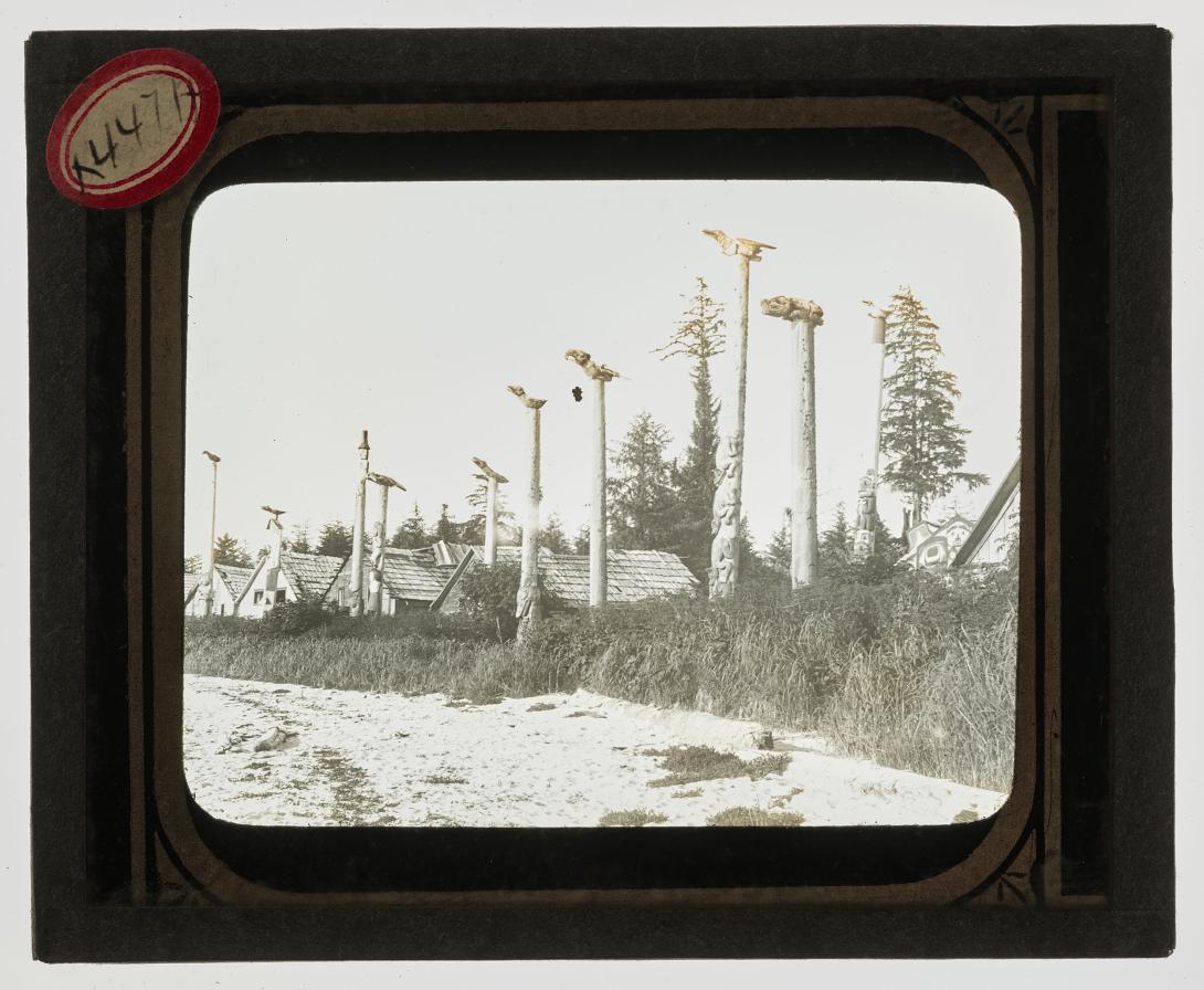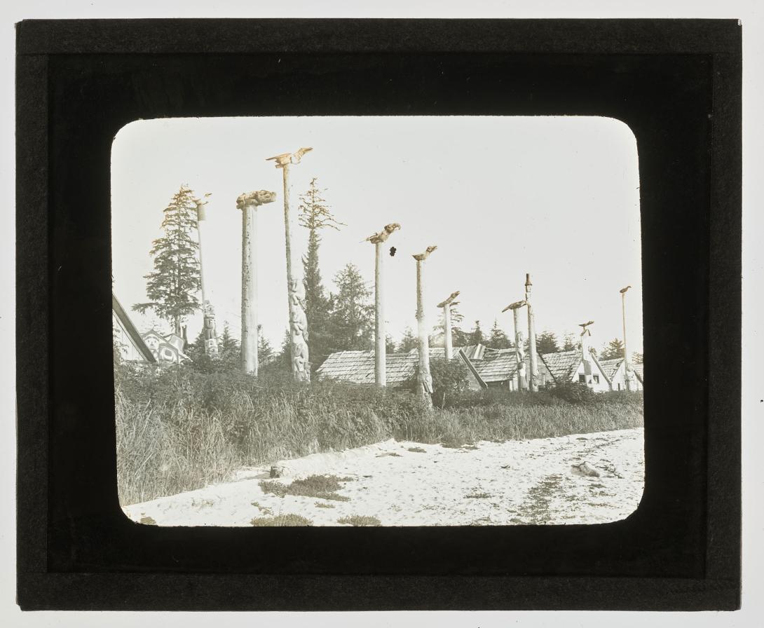 Tlingit totem poles and houses at the deserted village, Cape Fox, Alaska, July 1899