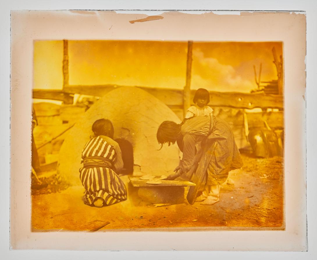Image also available in the Smithsonian Virtual Online Archives (SOVA), National Museum of Natural History, National Anthropological Archives (viewed May 2021): Guide to the Edward S. Curtis papers and photographs, circa 1895-2001; series 9: Photographs; 9.3 The North American Indian; volume 17, 1905, 1924; box G29; 1788: Santa Clara women placing bread in oven.