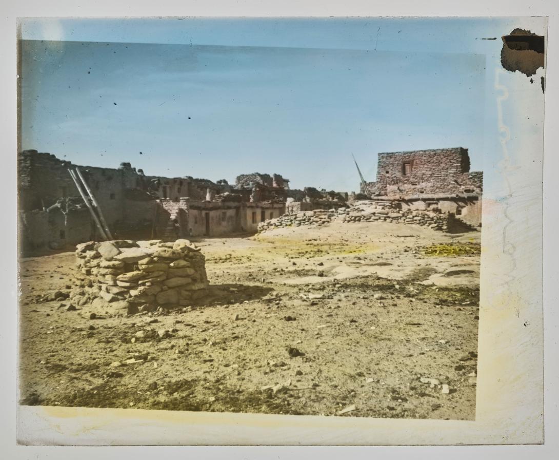 A view of a Native American village, possibly Hopi Sipaulovi peublo.