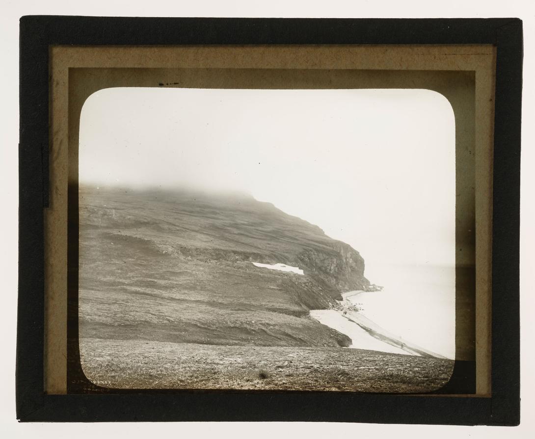 Image also available in the online World Digital Library (viewed May 2021): The photograph is one of 386 preserved in a 127-page album held in the Albert K. Fisher Papers, "Harriman Alaska Expedition, 1899" photographic album, Box 52, Item 1, at the Library of Congress; title: View of Saint Matthew Island, Where we Collected the Snowflakes. July 15, 1899.