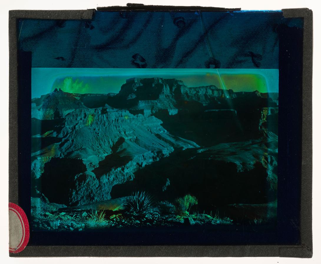 1 lantern slide : photograph on glass, sepia toned and blue tinted ; 3 1/4 x 4 inches (lantern slide format)