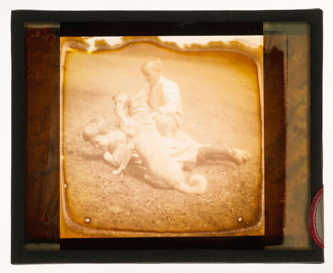 Photograph is identified in the Library of Congress online catalog with the title "Nicholas, Archie & Quentin & the dog", dated ©1904, Library of Congress Prints and Photographs Division, LOT 10512, Library of Congress number 2009633573; summary: "Photograph showing boys and dog playing on the lawn at Sagamore Hill". (viewed May 2021)