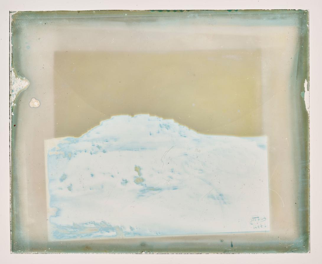 1 lantern slide : photograph on glass, blue tinted ; 3 1/4 x 4 inches (lantern slide format)