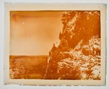 ARC 1176.192, Three men sitting on the side of a cliff (Apsáalooke/Crow)
