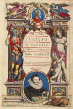 Harington’s translation of Orlando Furioso is one of the great masterworks of English literature. It made this sprawling epic poem easily accessible in court circles where there was a constant demand for Ariosto’s stories of sieges, battles, quests, enchantments, damsels in distress, and feats of chivalry. Harington dedicated it to Queen Elizabeth, who is said to have commanded him to perform the task of translating nearly forty thousand lines of Italian verse as a punishment for having shown one of the ribald episodes to the ladies of the court.