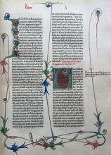 One of the first books printed in Italy is St. Augustine’s De civitate dei. It was printed at the Benedictine monastery of Subiaco on 12 June 1467 by Conrad Sweynheym and Arnold Pannartz. A recent reference request took me to our copy of the Subiaco De civitate dei. As was traditional, the printers left space in the type-set page for the addition of hand decoration and painted letters. The style of painting often tells you were the book ended up after it left the printing press and hopefully who its first owner was. The Morgan’s De civitate dei left Subiaco and crossed the Alps to Salzburg, where the artist Ulrich Schreier decorated the book for Bernhard von Kraiburg (1412–1477), Bishop of Chiemsee (Bavaria).