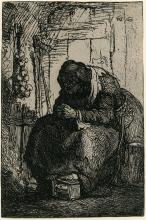 Old Woman Seated in a Cottage, with a String of Onions on the Wall