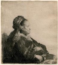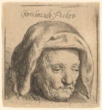 The Artist's Mother in a Cloth Headdress, Looking Down: Head Only