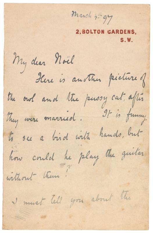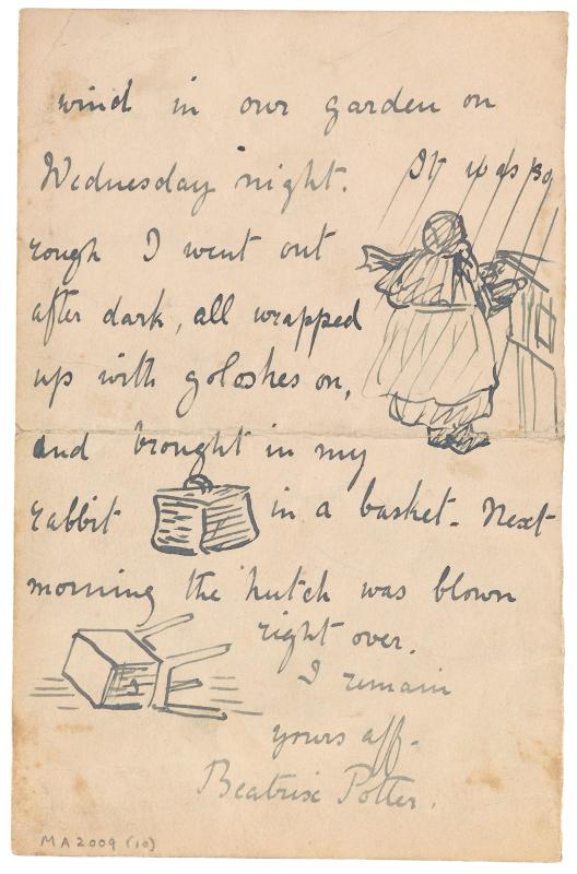 Her books retain the simple joy, subtle wit, and playful immediacy of impromptu private letters written for "real children" on subjects drawn from day-to-day experience with no commercial constraints and no thought of publication. Shown here are the twelve picture letters in the Morgan's collection. Eleven were addressed to Noel Moore, one to his younger sister Marjorie. Here one can see the earliest known picture letter along with later examples containing fanciful illustrations, comical vignettes, and narrative experiments that prefigure Peter Rabbit and other masterpieces of children's literature.