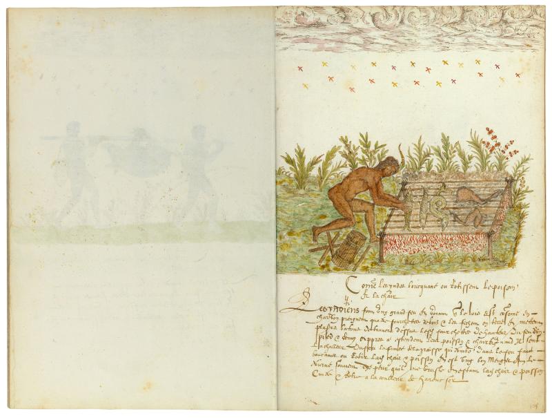 Come Les Yndes Boucquane Ou Rotissent Le Poisson Et La Chair (How the Indians Smoke or Roast Fish and Meat)
