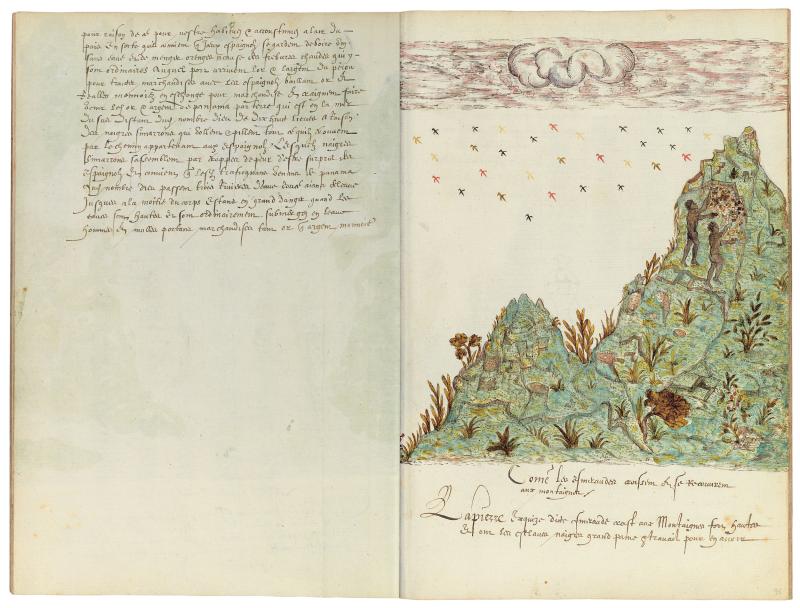 In 1983, The Morgan Library & Museum received, as the bequest of Clara S. Peck, an extraordinary volume whose beautiful paintings and descriptions document the plant, animal, and human life of the Caribbean late in the sixteenth century. Spaniards had already begun to exert influence over the indigenous people of the area when explorers from England and France arrived, among them Sir Francis Drake. The volume, known as the Drake Manuscript and titled Histoire Naturelle des Indes when it was bound in the eighteenth century, gives us a wonderful picture of daily life at the time of Drake's many visits to the region. Although Drake's connection to the manuscript is uncertain, he is mentioned on more than one occasion by the authors. Drake himself is known to have painted, but none of his work survives.