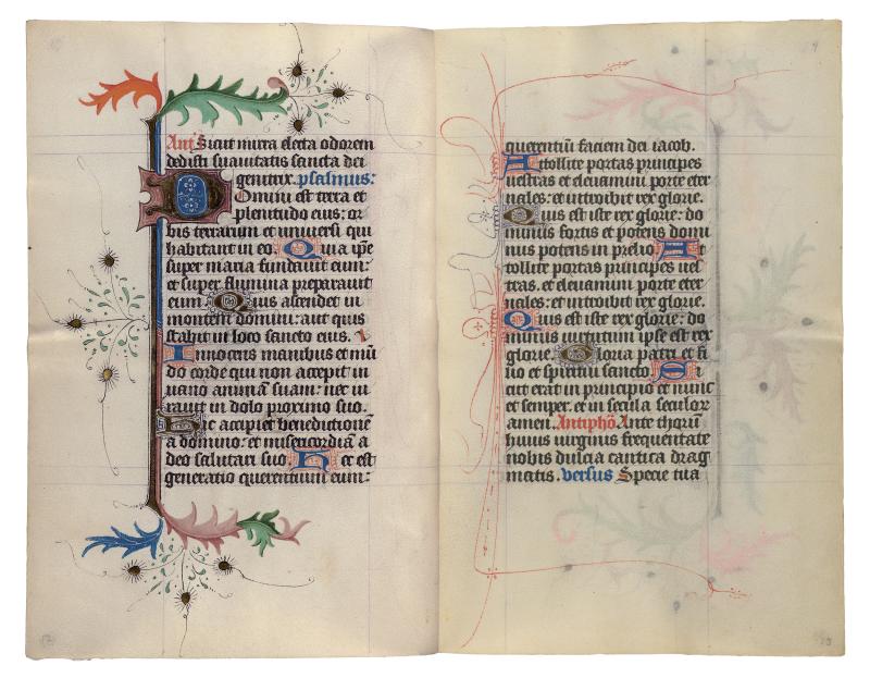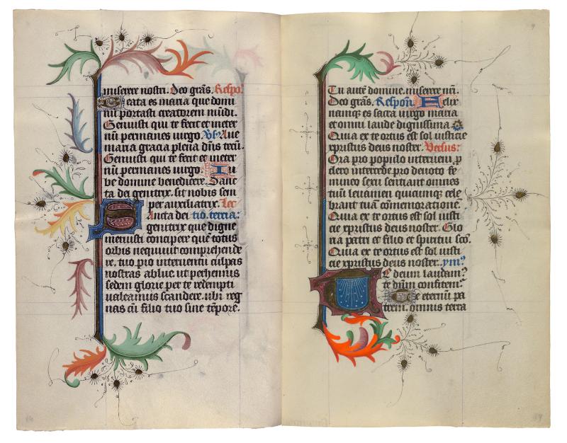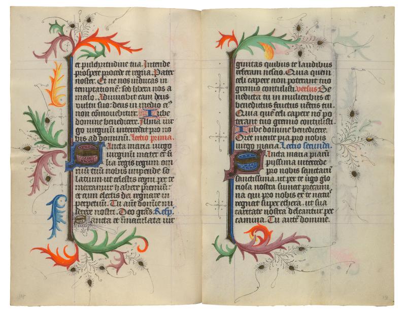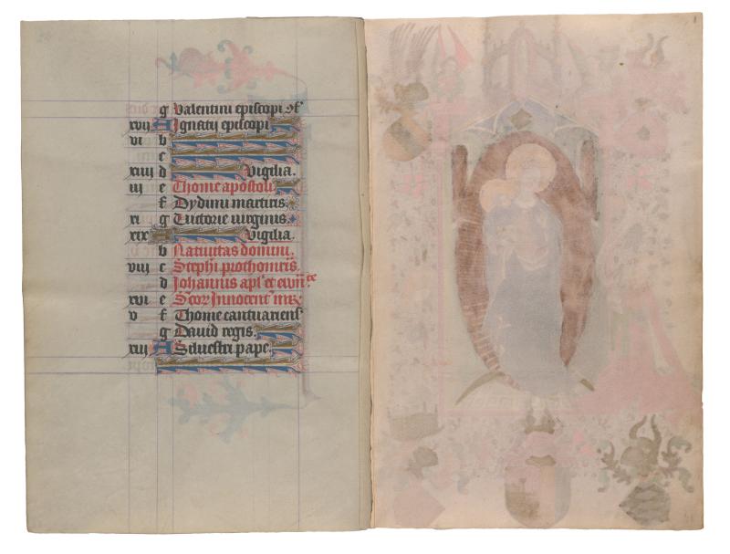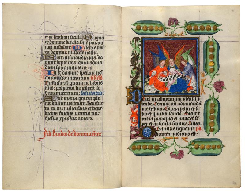 This digital facsimile provides reproductions of all pages from the Hours of Catherine of Cleves. The original one-volume prayer book had been taken apart in the nineteenth century; the leaves were shuffled and then rebound into two confusing volumes. This presentation offers the manuscript in its original, fifteenth-century sequence.