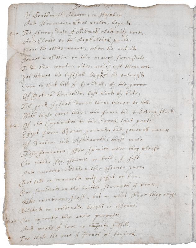 Paradise Lost. Manuscript of Book I, in the hand of an amanuensis, ca. 1665.