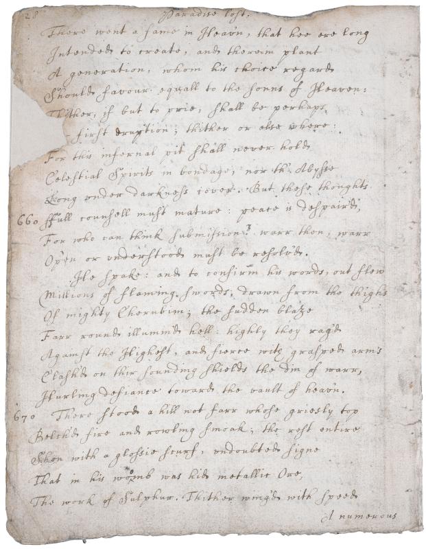 Paradise Lost. Manuscript of Book I, in the hand of an amanuensis, ca. 1665.